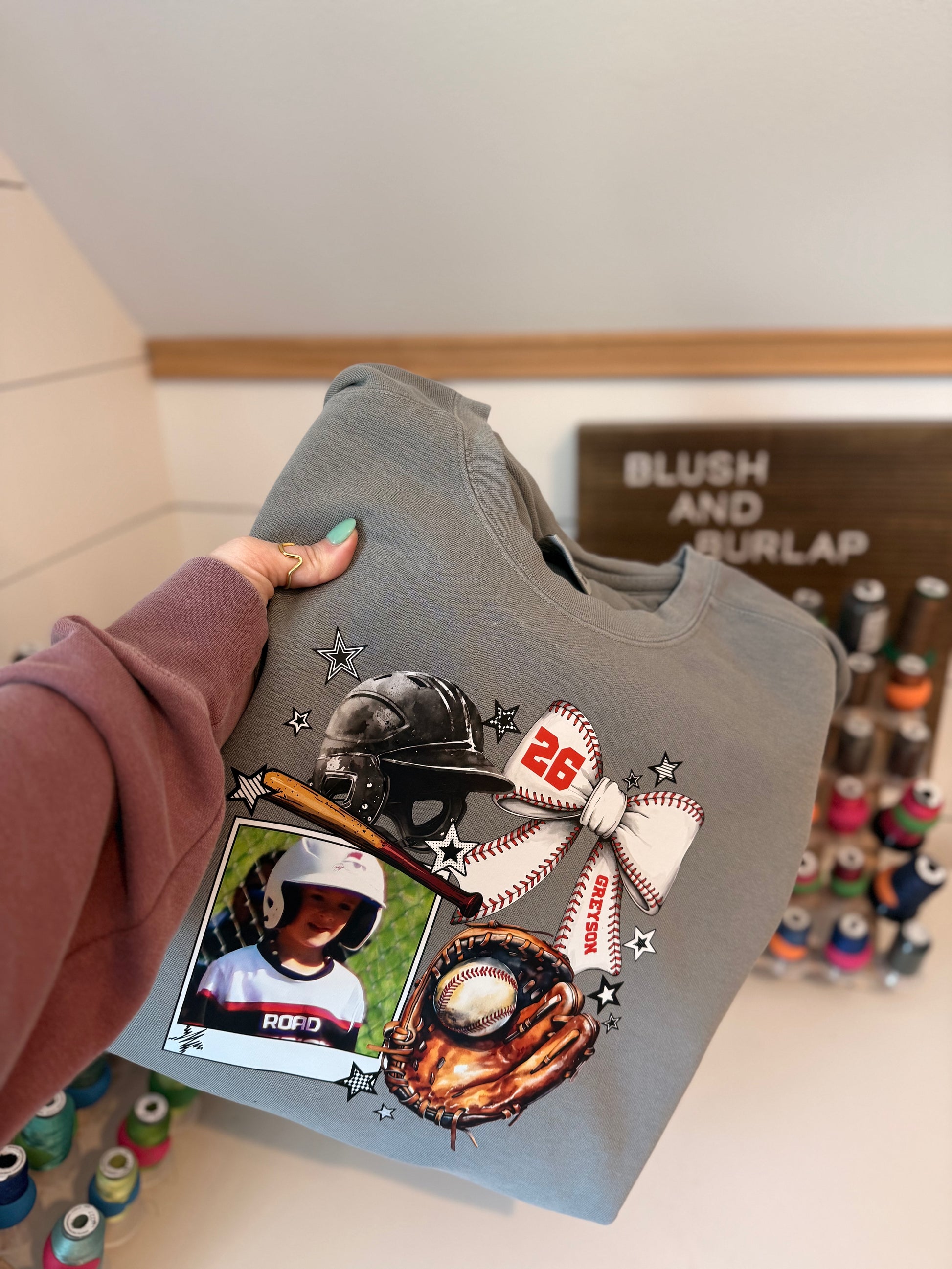 Celebrate your team spirit with a custom baseball photo sweatshirt crafted from a premium comfort colors blend. Perfect for fans, players, and coaches who want to showcase their passion in style. Personalize with your favorite baseball moment, or player photo—each piece is made to order with meticulous attention to detail. Cozy, durable, and uniquely yours.