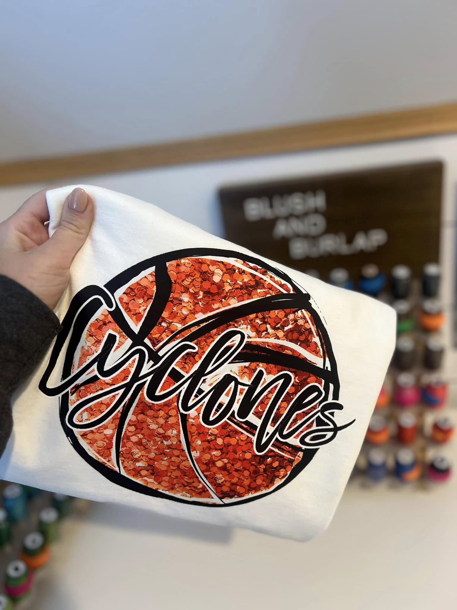 Elevate your team pride with this custom glitter basketball tee. The eye-catching faux glitter design captures the energy and passion of the game, making it perfect for fans, players, and supporters alike. Personalize it to showcase your team name and spirit—ideal for game day, team events, or showing your loyalty year-round. Comfortable, stylish, and uniquely yours.