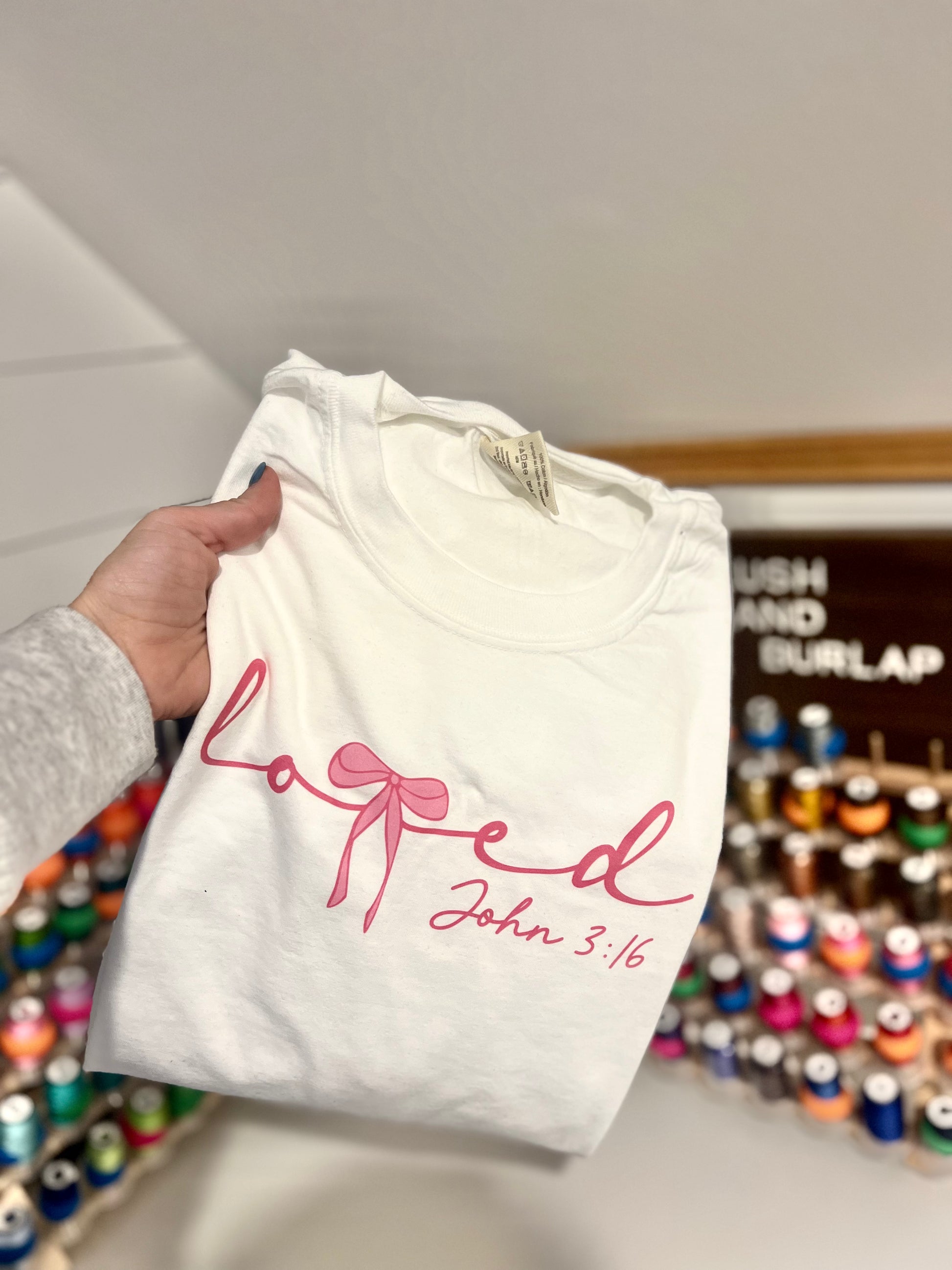 Spread love and faith this Valentine's Day with our Loved Coquette tee. This design blends coquette aesthetics with a heartfelt spiritual meaning, creating a piece that celebrates both devotion and affection. Crafted on Comfort Colors fabric, it's available in long and short sleeve styles to suit your season. Perfect for gifting or keeping for yourself, this tee lets you wear your values with undeniable charm and style.