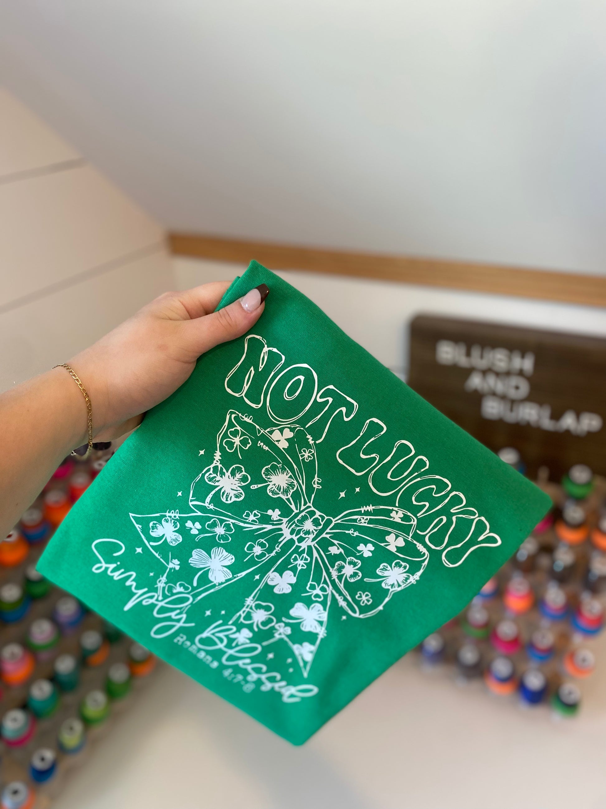 A St. Patrick's Day essential that celebrates gratitude over superstition. This thoughtfully designed piece combines festive spirit with meaningful messaging, perfect for anyone who believes blessings matter more than luck. Whether you're wearing it to the parade, a casual gathering, or just spreading good vibes, this piece makes a subtle statement that resonates.