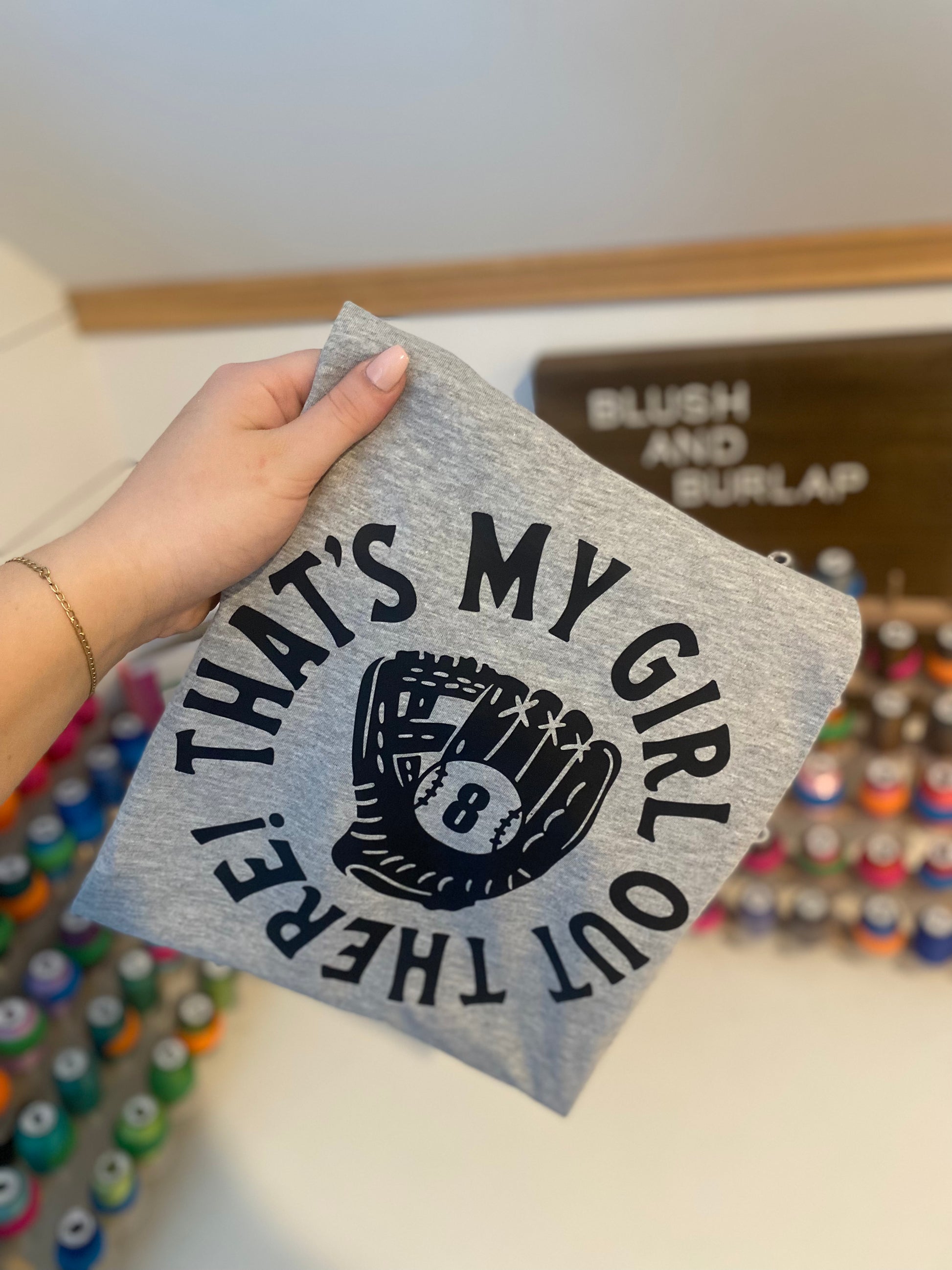 Celebrate your girl's athletic pride with this custom softball shirt, designed for family who want to show their unwavering support. Personalize with her number to make game day even more special. Crafted from quality fabric, this shirt works equally well as a spectator essential or a casual everyday piece. Perfect for cheering from the stands or wearing around town—a wearable reminder of her dedication and your pride in watching her play.