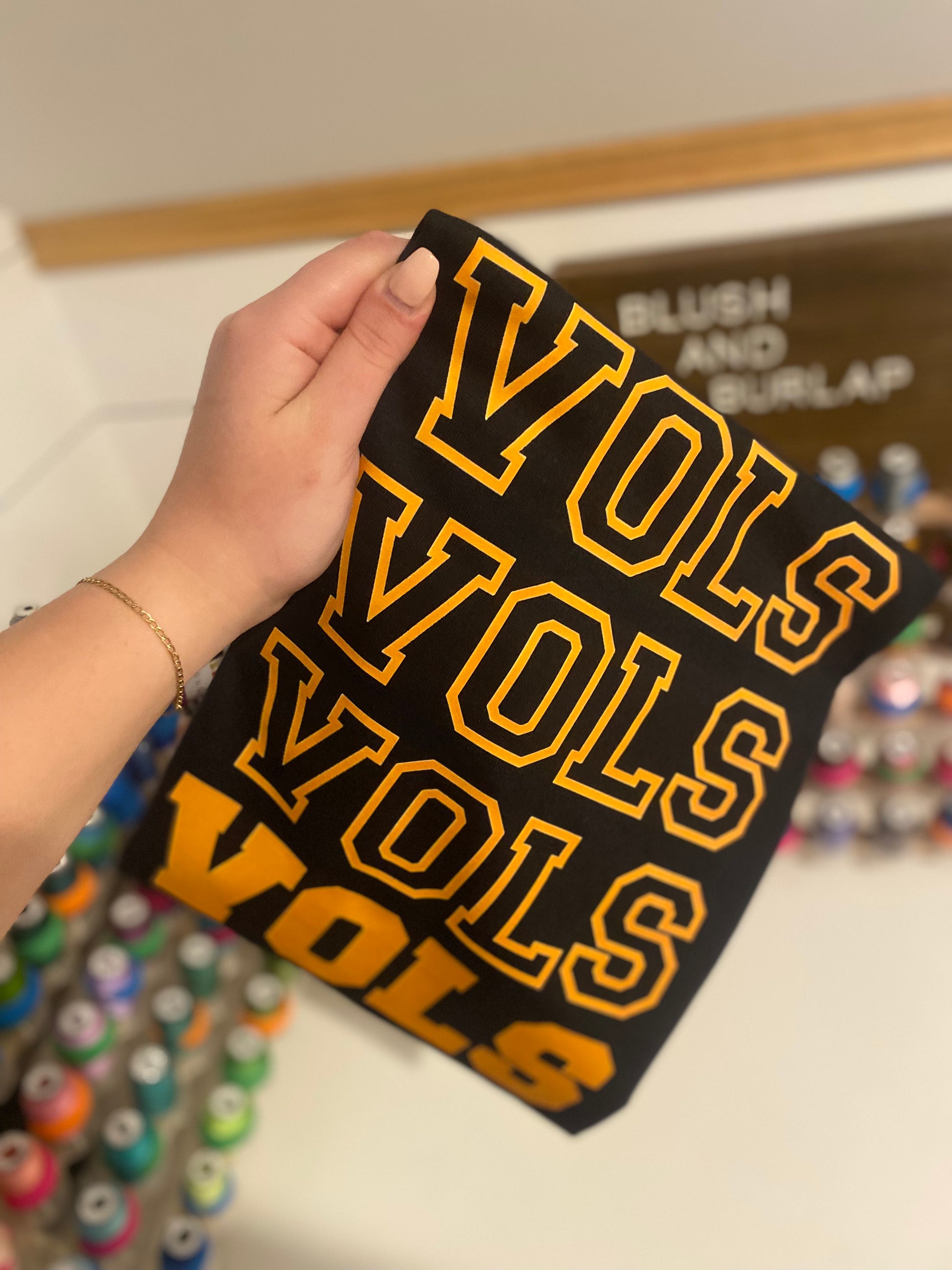 Celebrate your Volunteer spirit with this bold Vols Vols Vols design, perfect for Tennessee fans who wear their pride with confidence. Featuring a striking graphic that captures the energy and tradition of Rocky Top, this piece brings together classic school spirit and modern style. Whether you're heading to game day, showing support around town, or gifting to a fellow fan, this design delivers authentic Vols flair. Available in versatile colorways that complement any wardrobe, it's the ultimate way to rep your team in true Blush & Burlap fashion—elevated, intentional, and unmistakably yours.